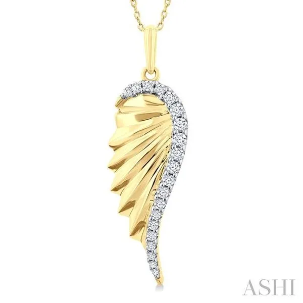 3. 1/5 Ctw Fluted Texture Angel Wing Round Cut Diamond Fashion Pendant With Chain in 10K Yellow Gold