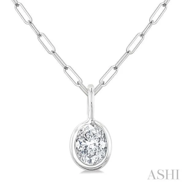 1/5 Ctw Oval Cut Bezel Set Diamond Fashion Pendant With Paperclip Chain in 14K White Gold Adler's Diamonds Saint Louis, MO