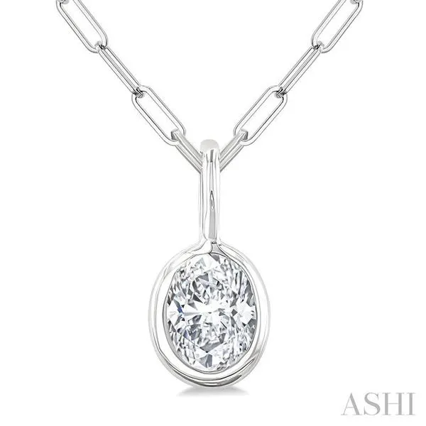 1/5 Ctw Oval Cut Bezel Set Diamond Fashion Pendant With Paperclip Chain in 14K White Gold Image 3 Adler's Diamonds Saint Louis, MO