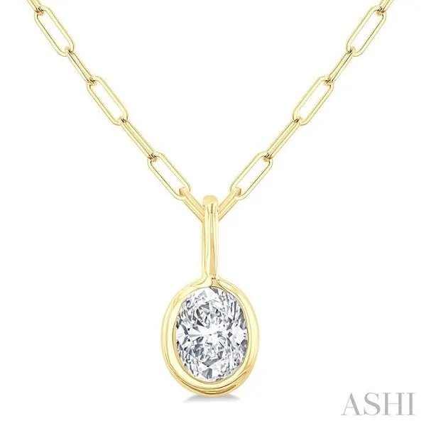 1/5 Ctw Oval Cut Bezel Set Diamond Fashion Pendant With Paperclip Chain in 14K Yellow Gold Adler's Diamonds Saint Louis, MO