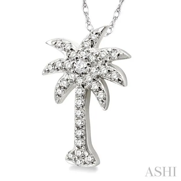 1/5 Ctw Palm Tree Round Cut Diamond Pendant in 14K White Gold with Chain Image 2 Adler's Diamonds Saint Louis, MO