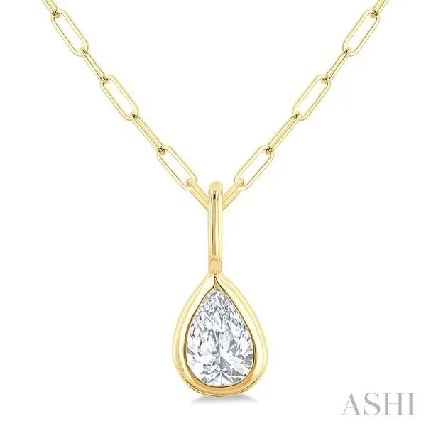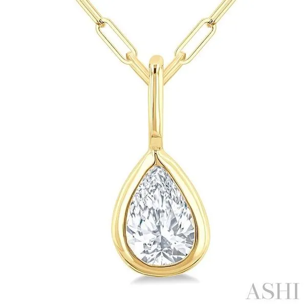 1/5 Ctw Pear Cut Bezel Set Diamond Fashion Pendant With Paperclip Chain in 14K yellow Gold Image 2 Adler's Diamonds Saint Louis, MO