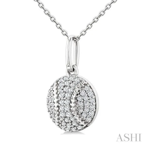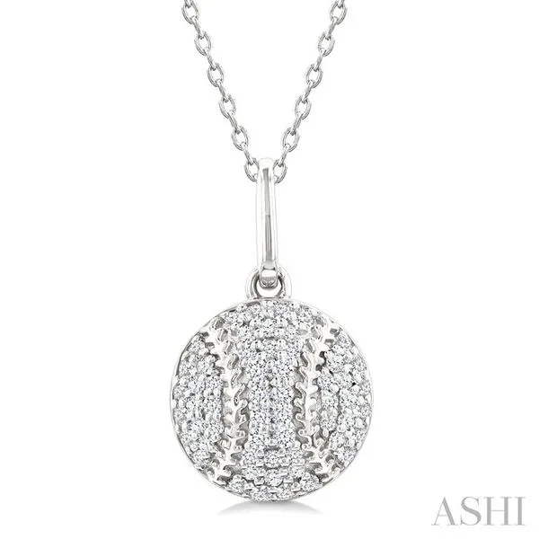 1/5 Ctw Petite Baseball Round Cut Diamond Fashion Pendant With Chain in 10K White Gold Image 3 Adler's Diamonds Saint Louis, MO