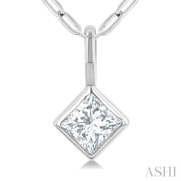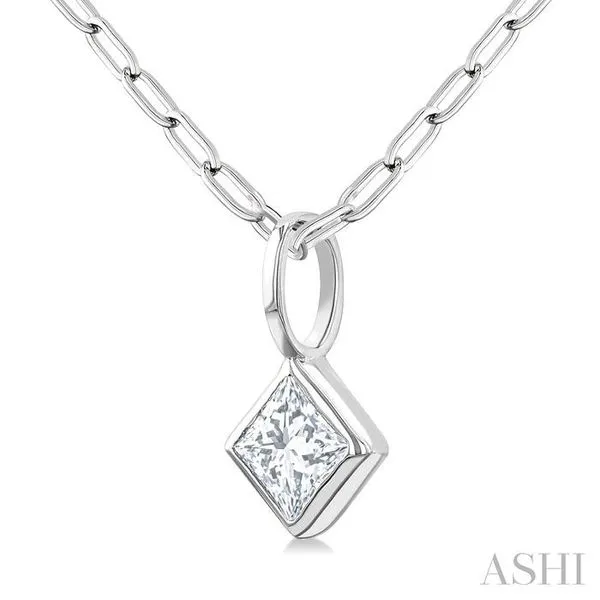 1/5 Ctw Princess Cut Bezel Set Diamond Fashion Pendant with Paperclip Chain in 14K White Gold Image 2 Adler's Diamonds Saint Louis, MO