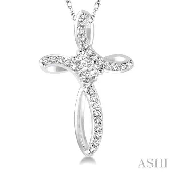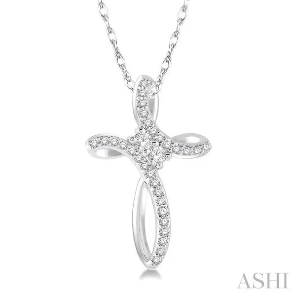 1/5 Ctw Rolled Back Cross Charm 2Stone Round Cut Diamond Pendant With Link Chain in 14K White Gold Image 2 Adler's Diamonds Saint Louis, MO