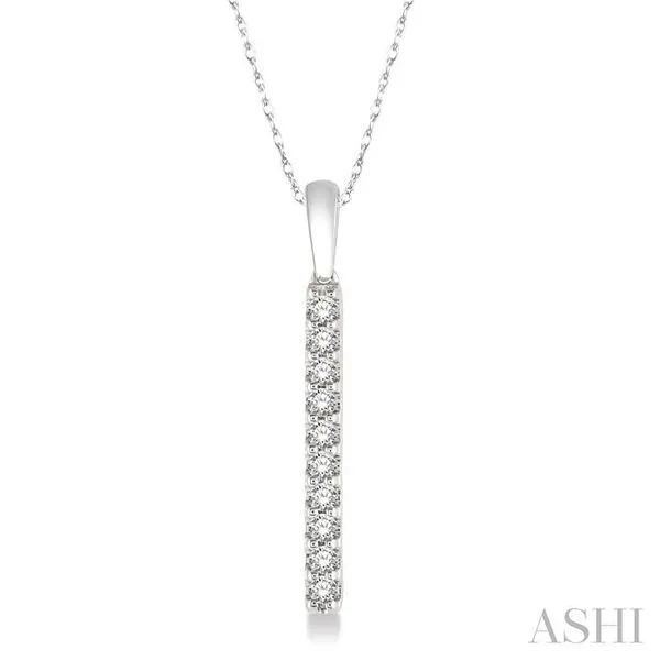 1/5 Ctw Vertical Bar Round Cut Diamond Pendant With Link Chain in 14K White Gold Image 2 Adler's Diamonds Saint Louis, MO