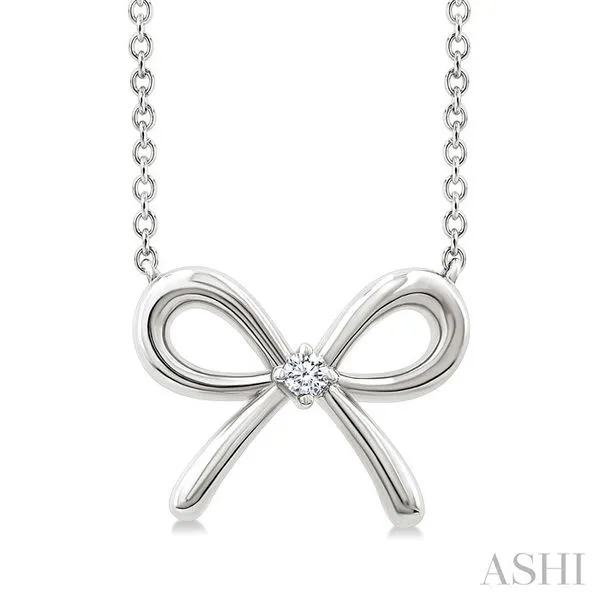 1/50 Ctw Bow Round Cut Diamond Fashion Pendant With Chain in Sterling Silver Image 2 Adler's Diamonds Saint Louis, MO
