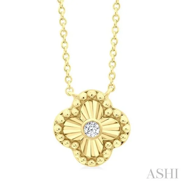 1/50 Ctw Fluted Texture Clover Bead Round Cut Diamond Fashion Pendant With Chain in 10K Yellow Gold Adler's Diamonds Saint Louis, MO