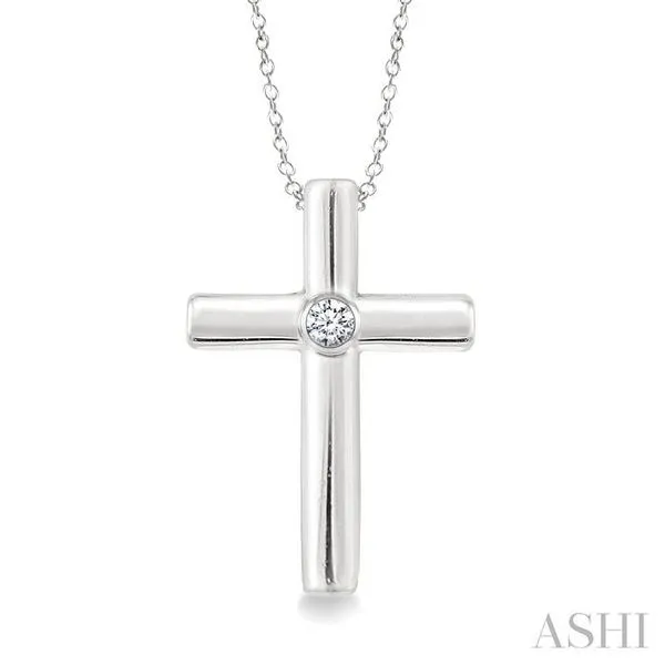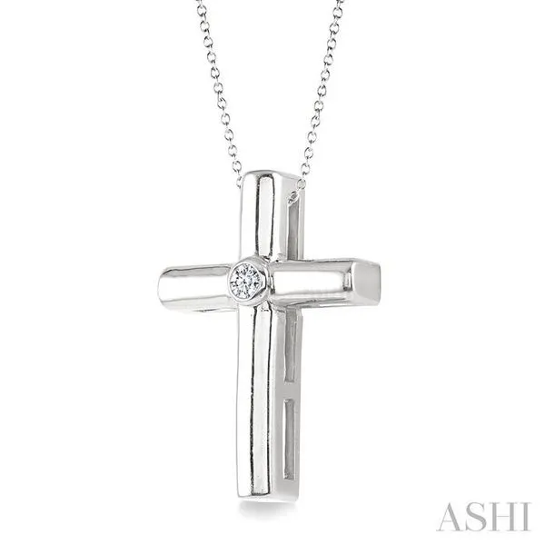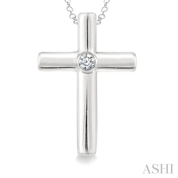 1/50 Ctw Round Cut Diamond Cross Pendant with Chain in Sterling Silver Image 2 Adler's Diamonds Saint Louis, MO