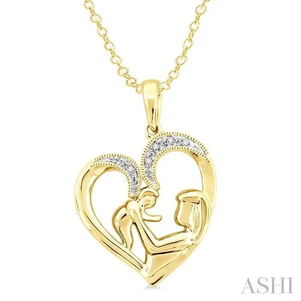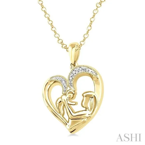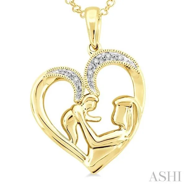 1/50 Ctw Round Cut Diamond Heart Shape Mom & Child Pendant With Chain in Yellow Gold Vermeil Image 2 Adler's Diamonds Saint Louis, MO