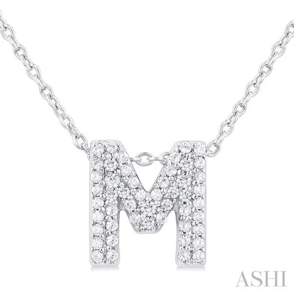 1/6 Ctw Bubble Accent Initial 'M' Round Cut Diamond Fashion Pendant With Chain in 10K White Gold Adler's Diamonds Saint Louis, MO