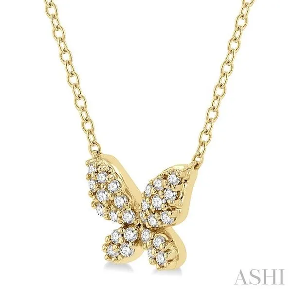 1/6 Ctw Butterfly Motif Round Cut Diamond Petite Fashion Pendant With Chain in 14K Yellow Gold Adler's Diamonds Saint Louis, MO