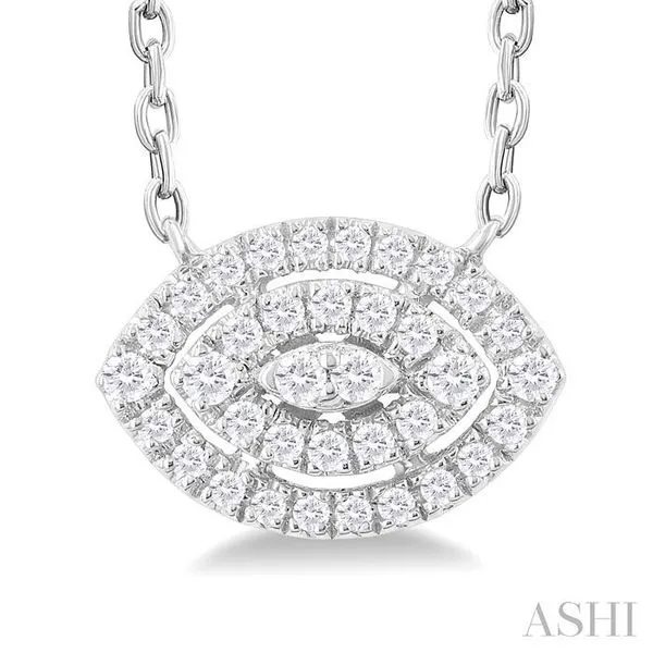 1/6 Ctw Double Halo Marquise Shape Petite Round Cut Diamond Fashion Pendant With Chain in 10K White Gold Adler's Diamonds Saint Louis, MO
