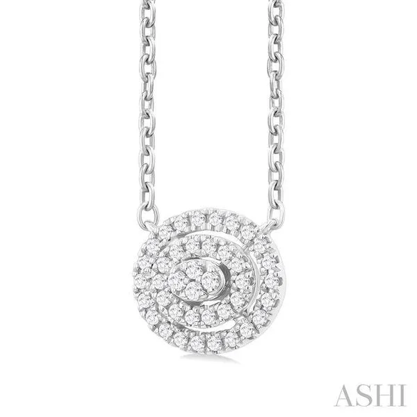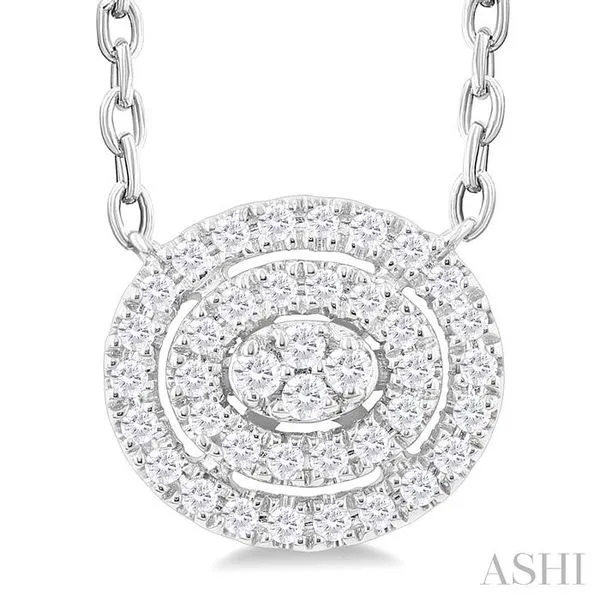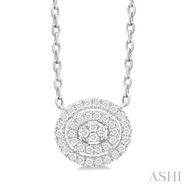 1/6 Ctw Double Halo Oval Shape Petite Round Cut Diamond Fashion Pendant With Chain in 10K White Gold Adler's Diamonds Saint Louis, MO