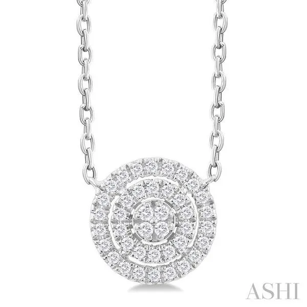 1/6 Ctw Double Halo Round Shape Petite Round Cut Diamond Fashion Pendant With Chain in 10K White Gold Adler's Diamonds Saint Louis, MO
