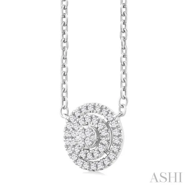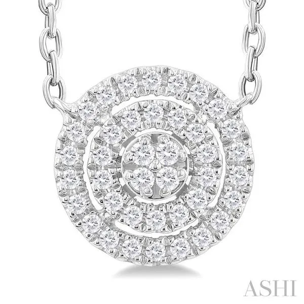 1/6 Ctw Double Halo Round Shape Petite Round Cut Diamond Fashion Pendant With Chain in 10K White Gold Image 3 Adler's Diamonds Saint Louis, MO