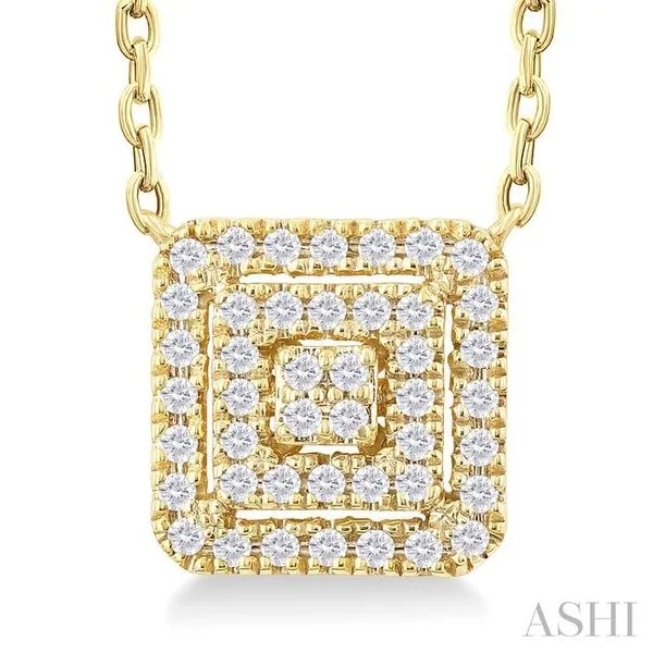 1/6 Ctw Double Halo Square Shape Petite Round Cut Diamond Fashion Pendant With Chain in 10K Yellow Gold Image 3 Adler's Diamonds Saint Louis, MO