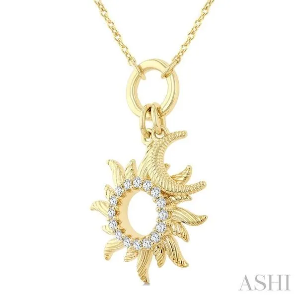 1/6 Ctw Fluted Sun and Crescent Moon Charm Round Cut Diamond Fashion Pendant With Chain in 10K Yellow Gold Image 3 Adler's Diamonds Saint Louis, MO