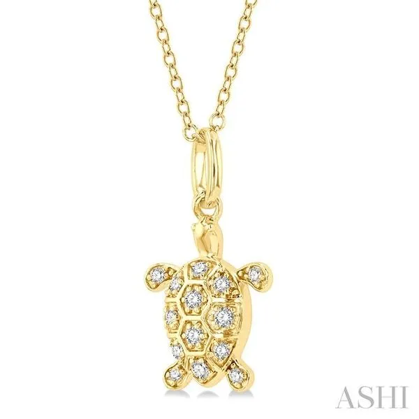 1/6 Ctw Marine Life Turtle Petite Round Cut Diamond Fashion Pendant With Chain in 10K Yellow Gold Image 2 Adler's Diamonds Saint Louis, MO