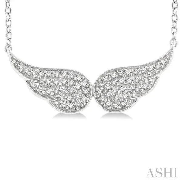 1/6 Ctw Petite Angel Wing Round Cut Diamond Fashion Pendant With Chain in 10K White Gold Image 3 Adler's Diamonds Saint Louis, MO