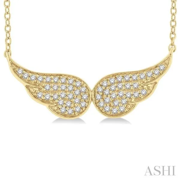 1/6 Ctw Petite Angel Wing Round Cut Diamond Fashion Pendant With Chain in 10K Yellow Gold Image 2 Adler's Diamonds Saint Louis, MO
