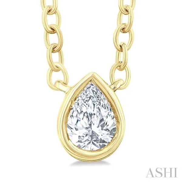 1/6 Ctw Petite Bezel Set Pear Cut Diamond Fashion Pendant With Chain in 10K Yellow Gold Image 4 Adler's Diamonds Saint Louis, MO