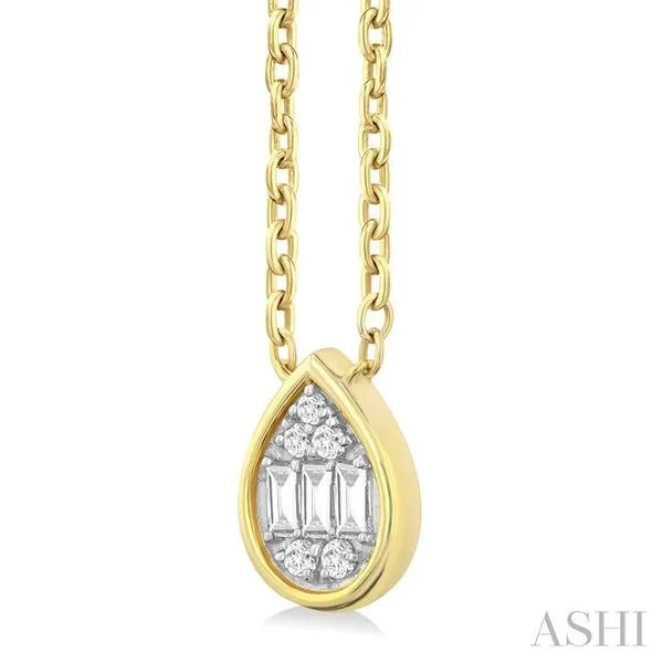 1/6 Ctw Petite Bezel Set Pear Shape Fusion Baguette and Round Cut Diamond Fashion Pendant With Chain in 10K Yellow Gold Image 3 Adler's Diamonds Saint Louis, MO