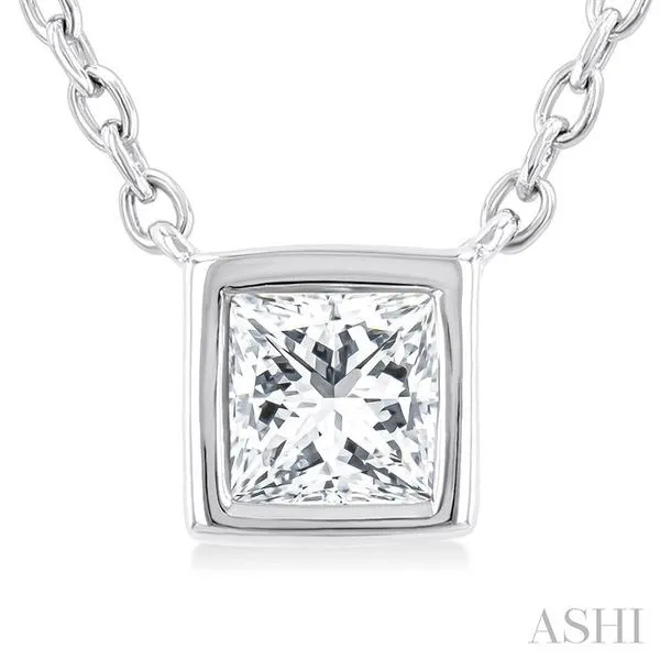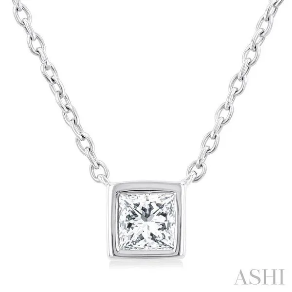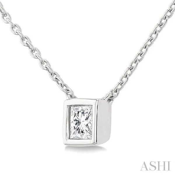 1/6 Ctw Petite Bezel Set Princess Cut Diamond Fashion Pendant With Chain in 10K White Gold Image 2 Adler's Diamonds Saint Louis, MO