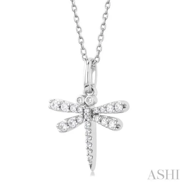 1/6 Ctw Petite Dragonfly Round Cut Diamond Fashion Pendant With Chain in 10K White Gold Image 3 Adler's Diamonds Saint Louis, MO