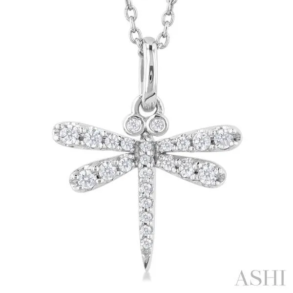 1/6 Ctw Petite Dragonfly Round Cut Diamond Fashion Pendant With Chain in 10K White Gold Adler's Diamonds Saint Louis, MO