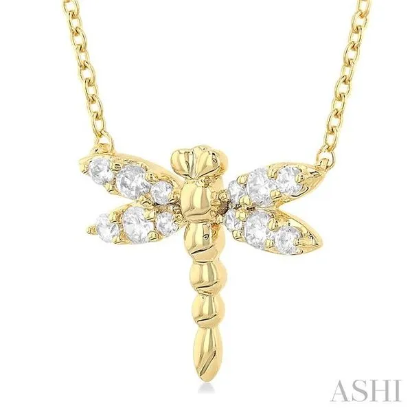 1/6 Ctw Petite Dragonfly Round Cut Diamond Fashion Pendant With Chain in 10K Yellow Gold Image 2 Adler's Diamonds Saint Louis, MO