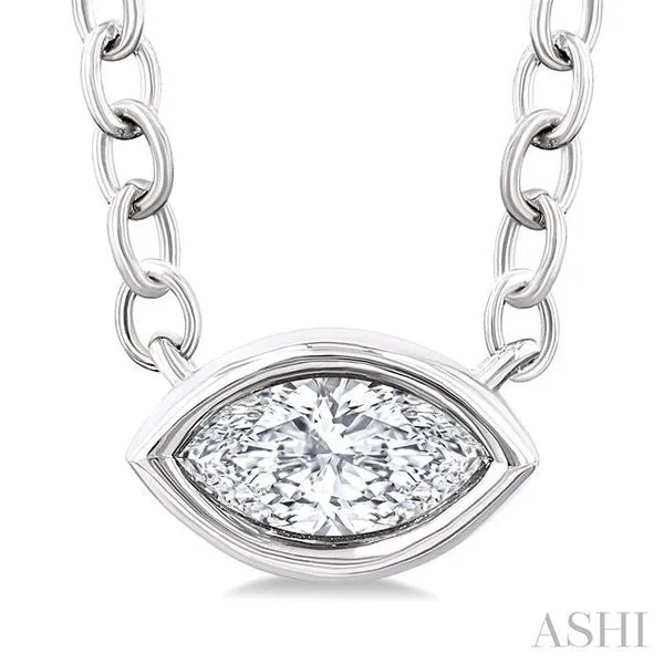 1/6 Ctw Petite East-West Bezel Set Marquise Cut Diamond Fashion Pendant With Chain in 10K White Gold Adler's Diamonds Saint Louis, MO