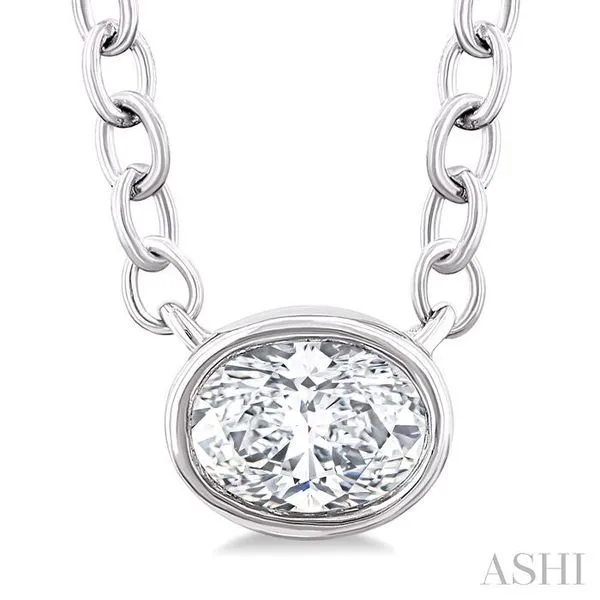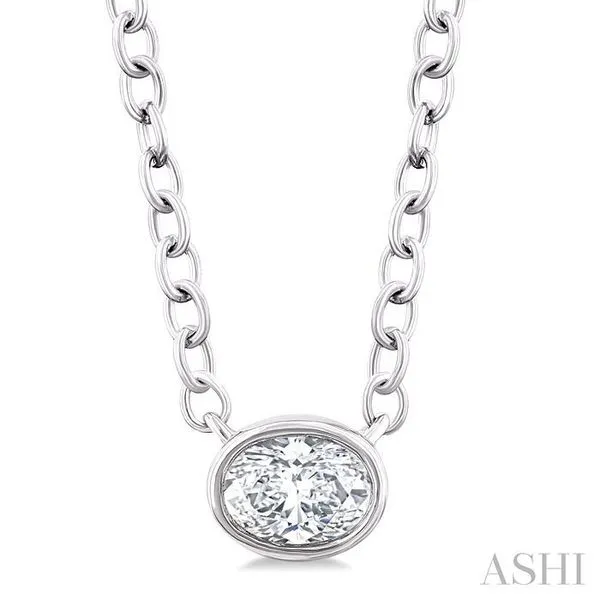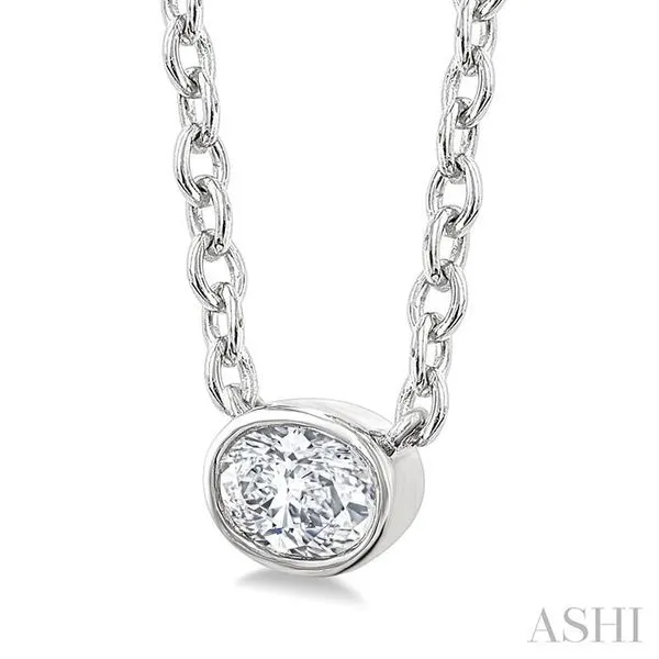 1/6 Ctw Petite East-West Bezel Set Oval Cut Diamond Fashion Pendant With Chain in 10K White Gold Image 4 Adler's Diamonds Saint Louis, MO