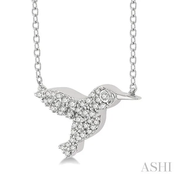 1/6 Ctw Petite Hummingbird Round Cut Diamond Fashion Pendant With Chain in 10K White Gold Image 2 Adler's Diamonds Saint Louis, MO