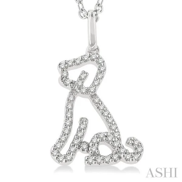 1/6 Ctw Petite Sitting Dog Round Cut Diamond Fashion Pendant With Chain in 10K White Gold Image 2 Adler's Diamonds Saint Louis, MO