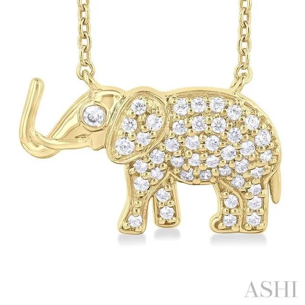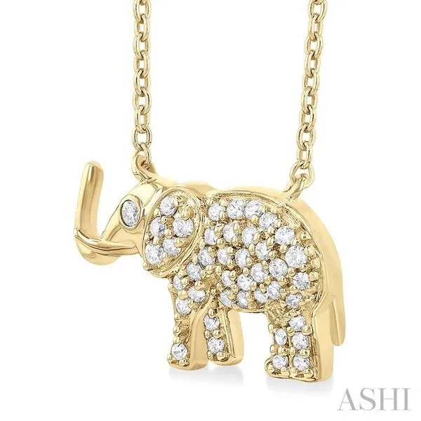 1/6 Ctw Petite Tusked Elephant Round Cut Diamond Fashion Pendant With Chain in 10K Yellow Gold Image 3 Adler's Diamonds Saint Louis, MO