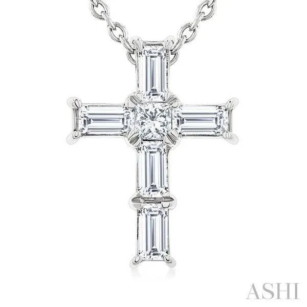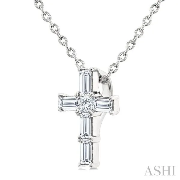 1/6 Ctw Princess and Baguette Cut Diamond Cross Petite Fashion Pendant With Chain in 10K White Gold Image 2 Adler's Diamonds Saint Louis, MO
