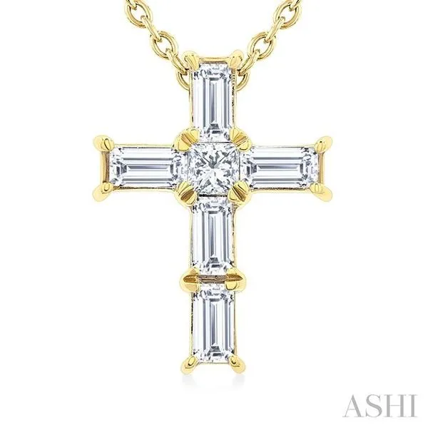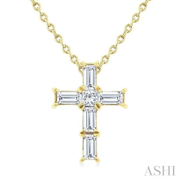 1/6 Ctw Princess and Baguette Cut Diamond Cross Petite Fashion Pendant With Chain in 10K Yellow Gold Image 2 Adler's Diamonds Saint Louis, MO