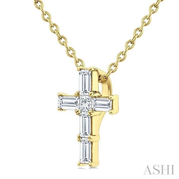 1/6 Ctw Princess and Baguette Cut Diamond Cross Petite Fashion Pendant With Chain in 10K Yellow Gold Image 3 Adler's Diamonds Saint Louis, MO