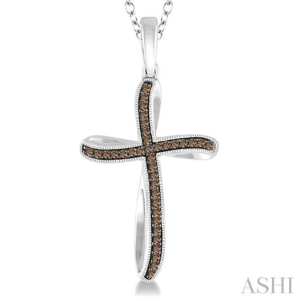 1/6 Ctw Round Cut Champagne Brown Diamond Cross Pendant in Sterling Silver with Chain Image 2 Adler's Diamonds Saint Louis, MO