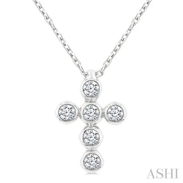 1/6 Ctw Round Cut Diamond 6-Stone Bezel Set Cross Pendant With Chain in 14K White Gold Adler's Diamonds Saint Louis, MO