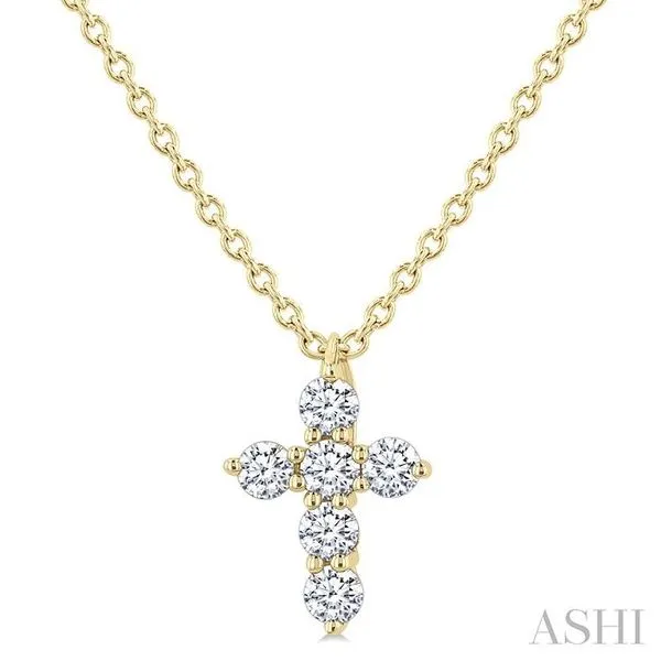 1/6 Ctw Round Cut Diamond Christian Cross 6-Stone Fashion Pendant With Chain in 14K Yellow Gold Adler's Diamonds Saint Louis, MO