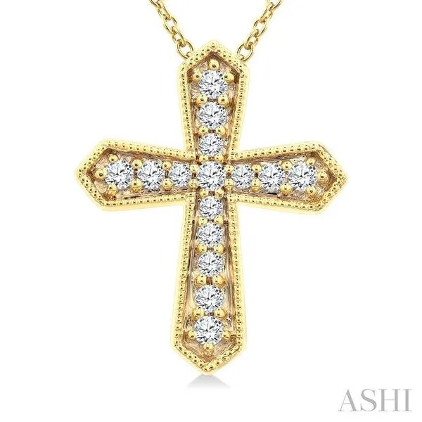 1/6 Ctw Round Cut Diamond Cross Petite Fashion Pendant With Chain in 10K Yellow Gold Image 3 Adler's Diamonds Saint Louis, MO