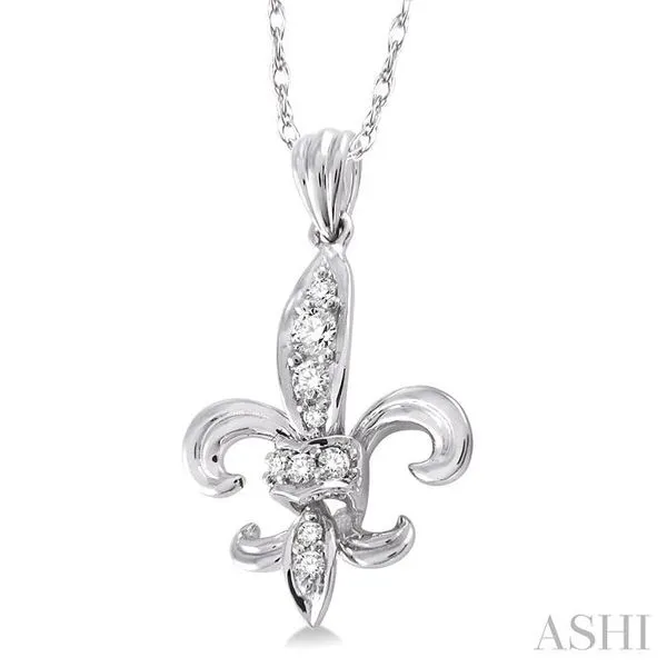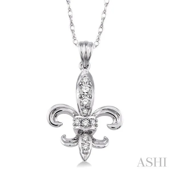 1/6 Ctw Round Cut Diamond Fleur De Lis Pendant in 14K White Gold with Chain Image 2 Adler's Diamonds Saint Louis, MO