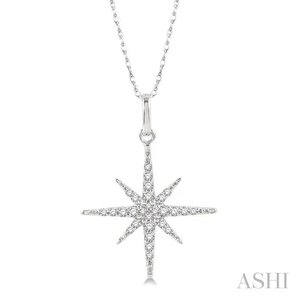 1/6 Ctw Round Cut Diamond Star Pendant With Chain in 10K White Gold Image 2 Adler's Diamonds Saint Louis, MO