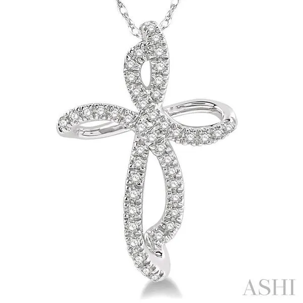 1/6 Ctw Twirl Pattern Cross Round Cut Diamond Pendant With Link Chain in 10K White Gold Image 3 Adler's Diamonds Saint Louis, MO
