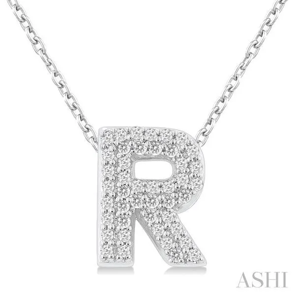 1/8 Ctw Bubble Accent Initial 'R' Round Cut Diamond Fashion Pendant With Chain in 10K White Gold Adler's Diamonds Saint Louis, MO