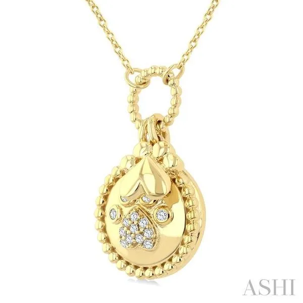 1/8 Ctw Medallion Dog Paw Charm Round Cut Diamond Fashion Pendant With Chain in 10K Yellow Gold Image 3 Adler's Diamonds Saint Louis, MO