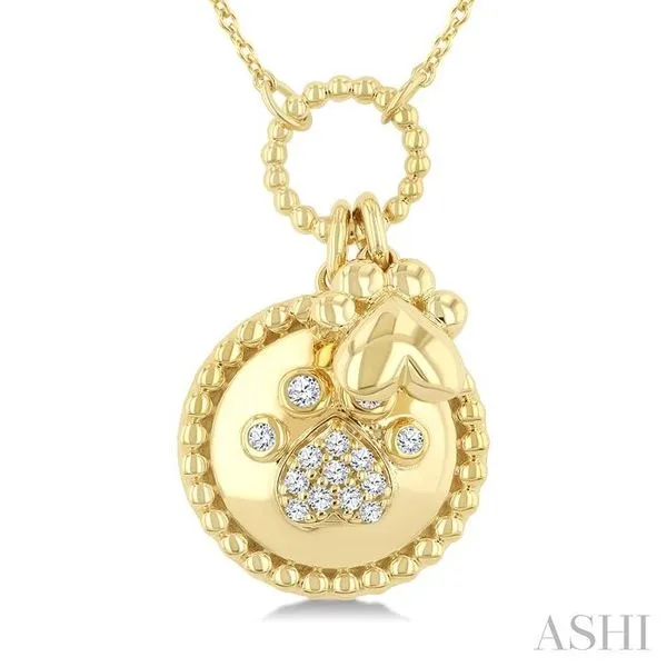 1/8 Ctw Medallion Dog Paw Charm Round Cut Diamond Fashion Pendant With Chain in 10K Yellow Gold Image 2 Adler's Diamonds Saint Louis, MO