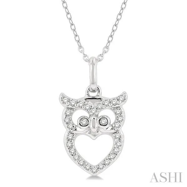 1/8 Ctw Owl Frame Petite Round Cut Diamond Fashion Pendant With Chain in 10K White Gold Image 2 Adler's Diamonds Saint Louis, MO